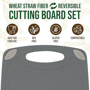 2-Piece Reversible Cutting Board Set Made from Natural Food Grade Wheat Straw Material - Eco-Conscious Alternative to Plastic - Gluten Free & BPA Free Chopping Boards for Kitchen