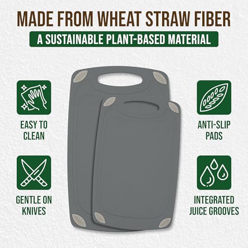 - The Eco-Conscious Choice - Ditch your ordinary cutting boards! Crafted mainly from wheat straw fiber - a sustainable plant-based material - these innovative cutting boards are good for the planet.