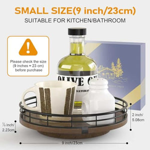 Farmhouse Oak 9 Lazy Susan Turntable Organizer for Cabinet. Round Wooden Lazy Susan Organization and Storage for Dining Table. Pantry. Kitchen. Countertop. Cupboard.Home Decor. Walnut Wood