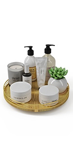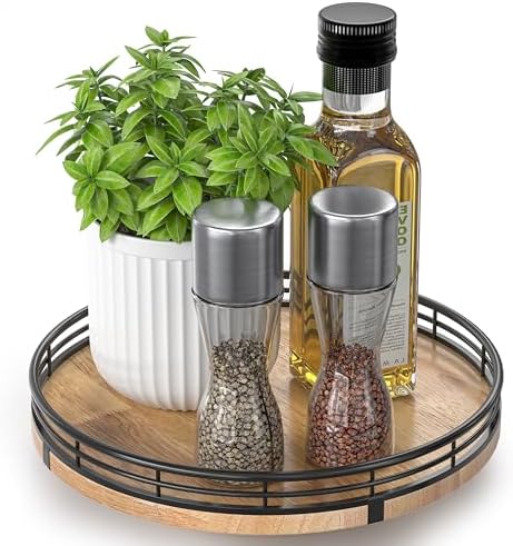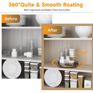 - 𝐕𝐄𝐑𝐒𝐀𝐓𝐈𝐋𝐄 𝐔𝐒𝐄:This lazy susan is enough to be used nearly anywhere. perfect in the kitchen. cabinets. dining room. office. etc. on your kitchen or dining table for organizing condiments. napkins. decor. candles. Easily reach all your medicine. spices. canned goods in your pantry. Next to your stove. hold all the essentials essences. bowls. greenery. and a butter dish. Good idea for the office desk and craft room to organize. Keep your coffee stuff perfect at your coffee station.