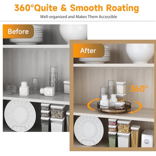 - 𝟑𝟔𝟎°𝐑𝐎𝐓𝐀𝐓𝐈𝐍𝐆 :The base is made of solid wood. and the spinning mechanism is made of steel ball bearings. which are well-built and allow for 360°smooth spinning. This Lazy Susan is very attractive and very easy to use to keep your spices. condiments. and more organized and accessible.