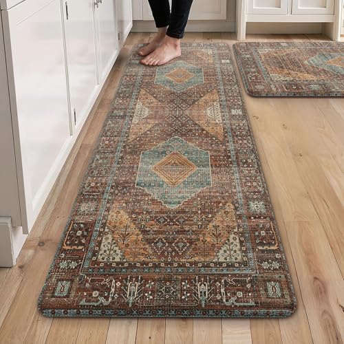 - Well Designed: Meticulously crafted with a focus on quality. GENIMO kitchen mats for floor skillfully intertwine modern. classic. and boho styles. elegantly embodying the sophistication and charm of vintage aesthetics. These kitchen decor and accessories feature intricate floral patterns and fascinating colors that are harmonized in tone. creating a captivating visual experience that enhances any home decor. apartment decor. or house setting—making them true home essentials