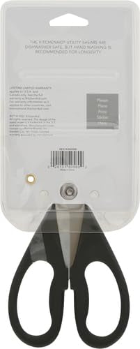 KitchenAid All Purpose Kitchen Shears with Protective Sheath Durable Stainless Steel Scissors. Dishwasher Safe. Soft Grip Comfort Handle. 8.72 Inch. Black