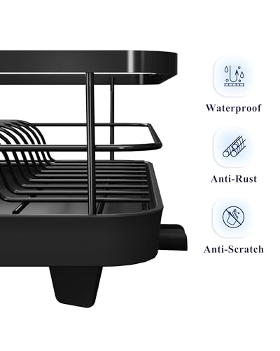 Kitsure Dish Drying Rack for Kitchen Counter. Stainless Steel Sink Organization and Storage Essentials with Cutlery Holder. Home and Appartment Decor. 12''W x 15.5''L. Black