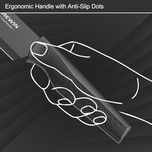 - NON-STICK & ERGONOMIC - The black coating on the blade ensures excellent non-stick and rust-resistant properties for our kitchen knives. Our ergonomic knife handle features anti-slip indented dots to ensure a firm and safe grip.