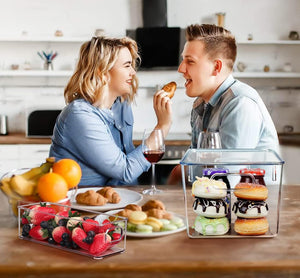 - 【SAVE IN MULTIPLE SPACES】- There are handles on both sides of the top edge of the kitchen storage box. which is convenient for pulling or transporting. so that you don't have to go back and forth to get it one by one. which saves a lot of time. Our pantry organization bins can be placed in kitchens. countertops. refrigerators. bathrooms. bedrooms. offices. cabinets. freezers. pantries and more.